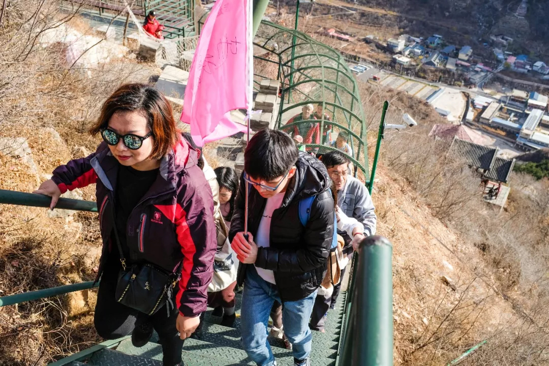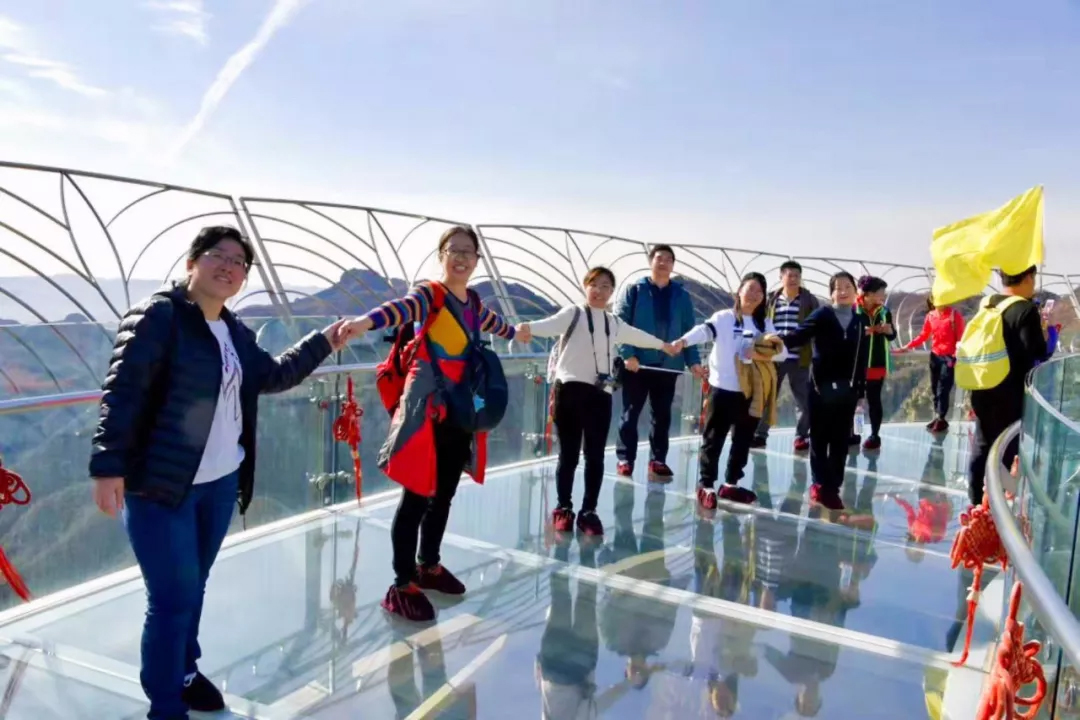 夠膽你就來,感受誰與爭峰的刺激,挑戰你我視覺的沖擊感。行走其間,俯瞰峽谷下面的萬丈深淵,可以在驚險刺激中體驗一覽眾山小的豪邁,在緊張與刺激中,去觀賞峽谷最美的秋冬交替的盛景。群山環抱,層林盡染。午餐過后,大家一同參觀了金海湖風景區,賞吉尼斯紀錄的壩體彩繪,看山色湖光,峰巒疊翠。