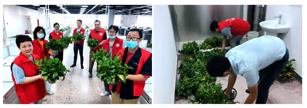 志愿者們充分發(fā)揮合作精神,抬水、運(yùn)輸、灌溉、整理莖葉……大家快步穿梭在水房和各樓層辦公場(chǎng)所之間,最終用了5個(gè)多小時(shí)的時(shí)間對(duì)廠區(qū)內(nèi)所有的綠蘿進(jìn)行了補(bǔ)水和修整。活動(dòng)期間,大家還積極總結(jié)經(jīng)驗(yàn),分析問(wèn)題,結(jié)合實(shí)際情況更換更為有效的方式方法,從而大大提升效率。萎縮的莖葉再次煥發(fā)生機(jī),讓志愿者疲憊的身軀得到了舒展,心情也得到了愉悅。