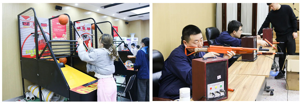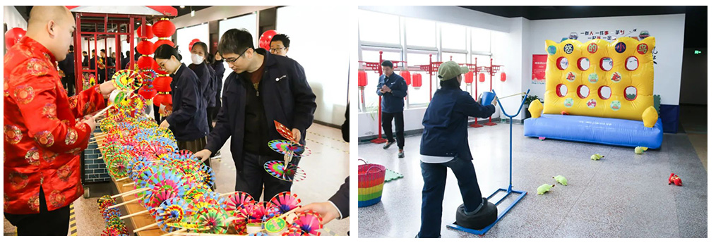 感受民間藝術、品嘗傳統美食、體驗趣味游藝。本次新春游園活動共設置了“大錘機”“憤怒的小鳥”“激光打氣球”“投籃比拼”“抓娃娃”“手工風車”等11個環節。豐富多樣的游藝形式吸引著大家匯集在各個游園項目前進行體驗,歡笑聲此起彼伏,處處洋溢著歡樂和喜慶的氛圍。