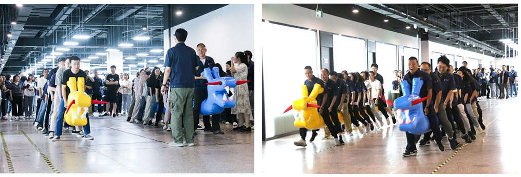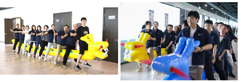 隨著艾葉飄香的端午節悄然臨近,公司工會組織開展了一場別開生面的50米10人旱地龍舟大賽。隨著裁判哨聲響起,沉睡的“巨龍”如離弦之箭飛奔而出,伴隨“左右、左右……”的口號,大家以腿為槳,以手為舵,人舟共進。15局激烈的對決,每一刻都讓人心潮澎湃,伴隨著觀眾們的歡呼聲,整個賽場仿佛變成了一片歡樂的海洋,每一個人都被這種氛圍所感染,沉浸在這場龍舟賽的盛宴之中。